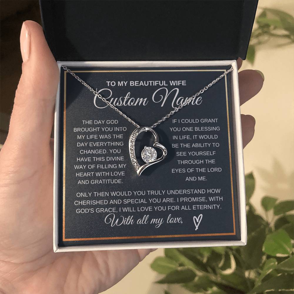 Personalized Gift to my Wife Forever Love Necklace 14k Gold Finish