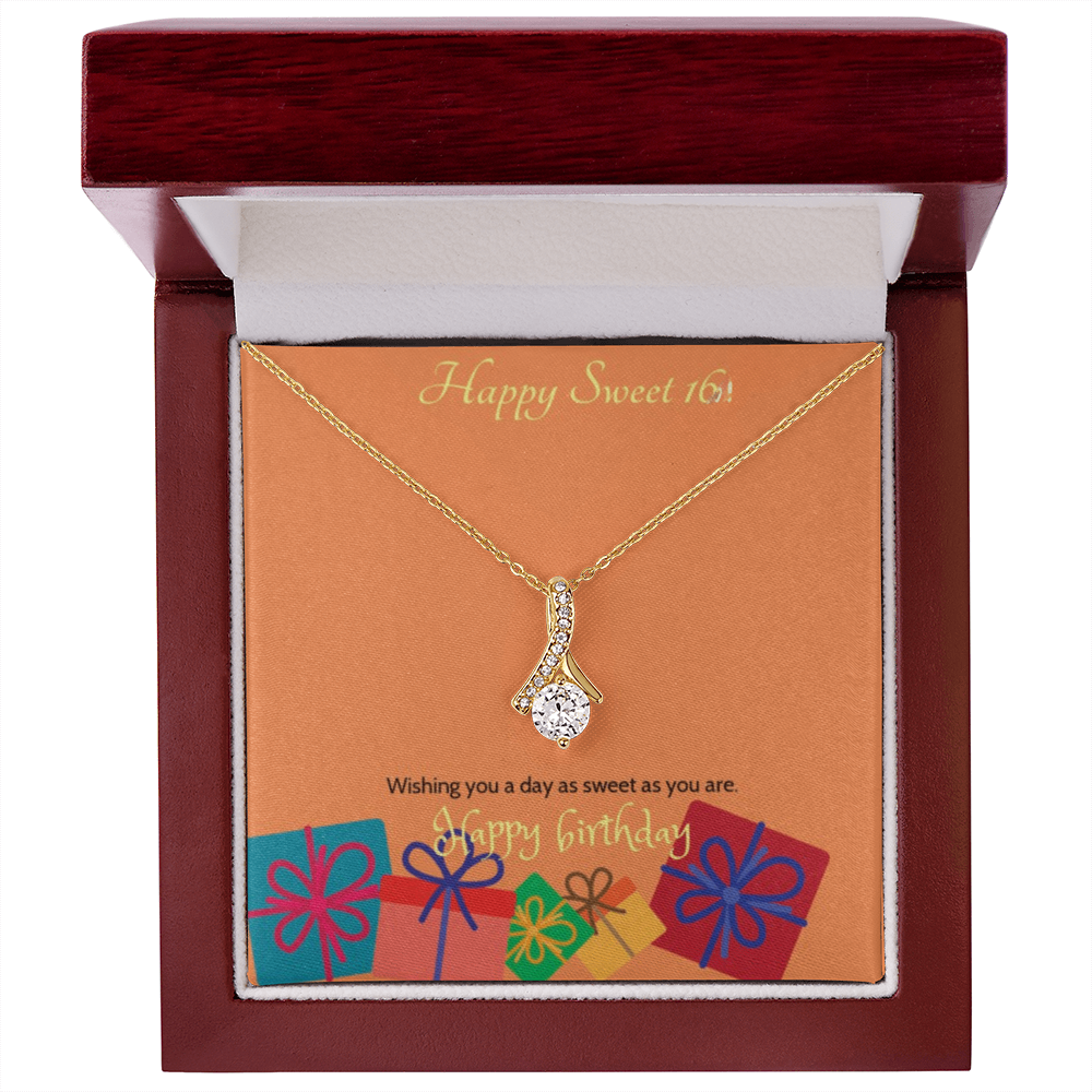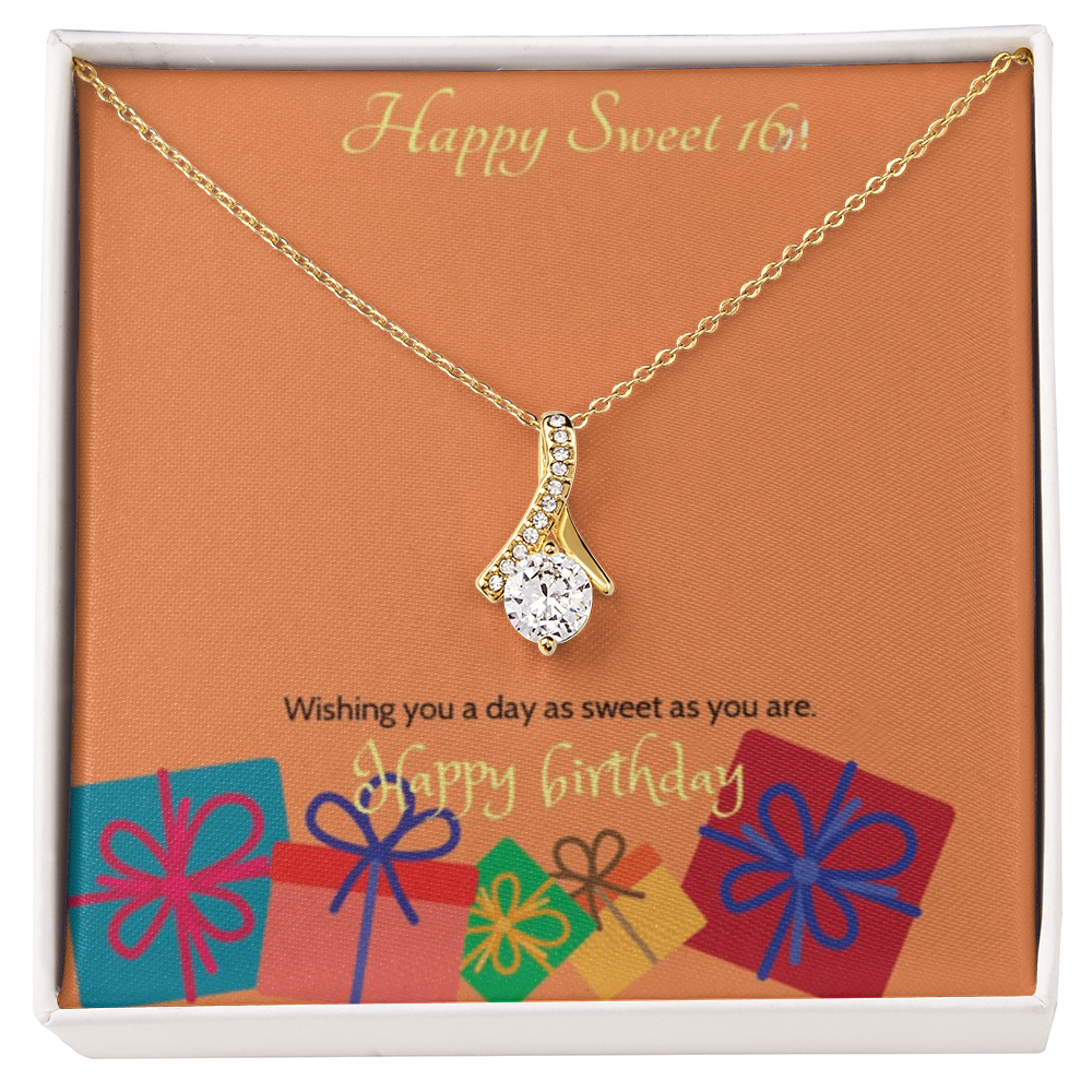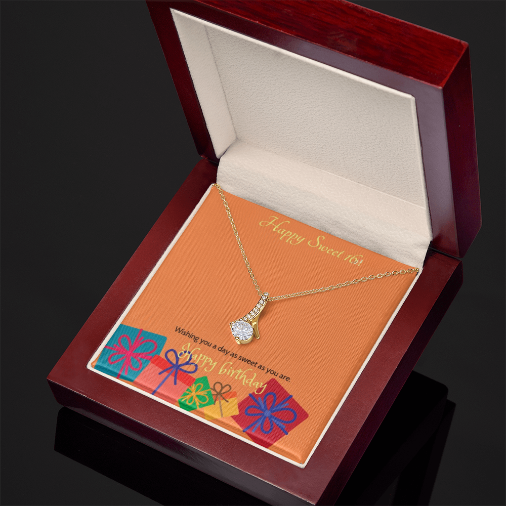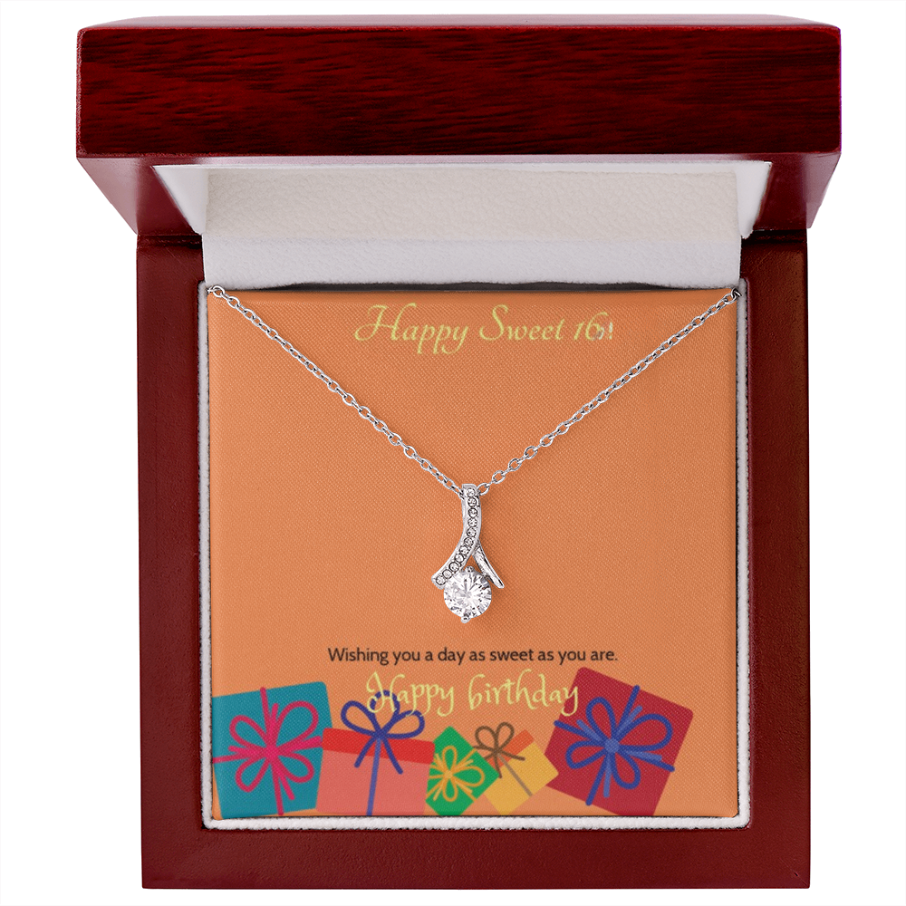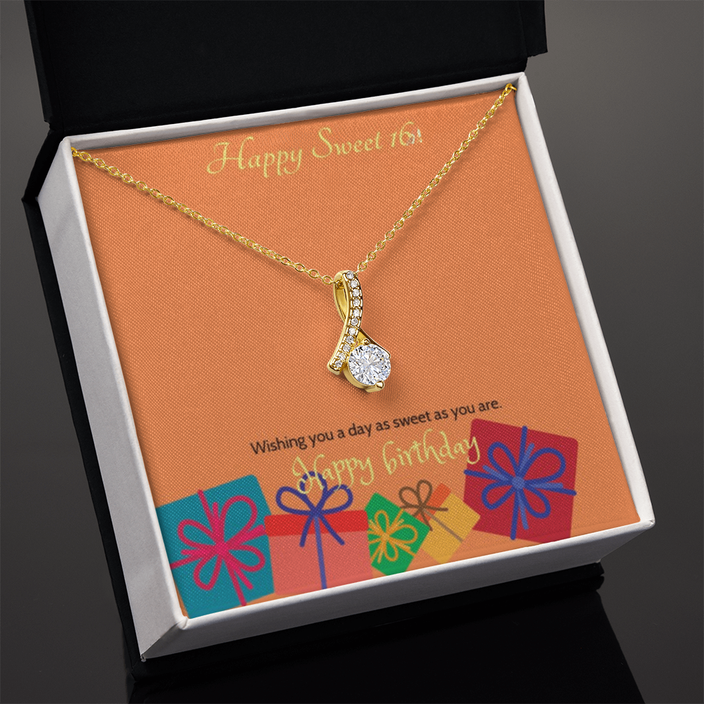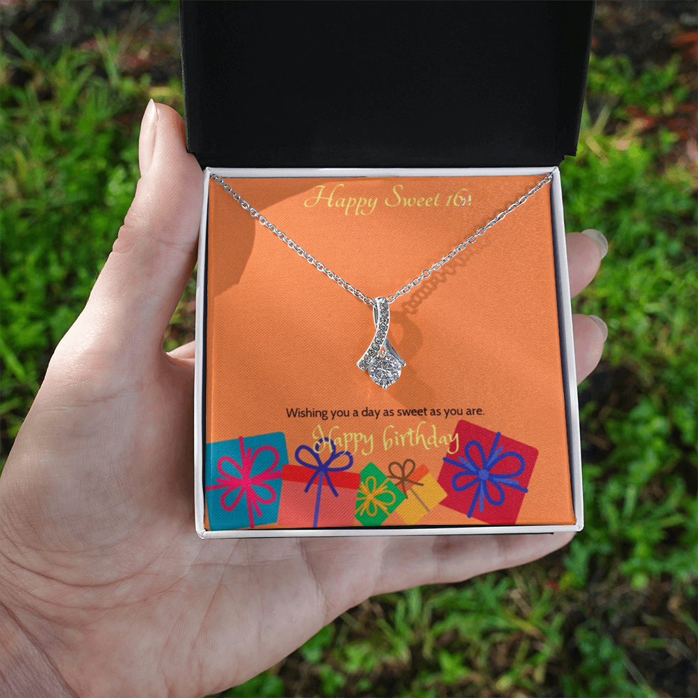 Celebrate her milestone with the Sweet Blossom Necklace, the perfect Sweet 16 gift for your daughter, granddaughter, sister, niece, or best friend. This elegant ribbon pendant with sparkling cubic zirconia is designed to capture the joy and beauty of turning sixteen.